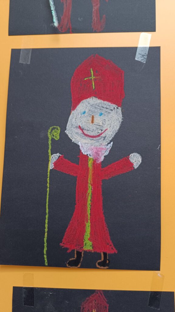 Der Nikolaus zeigte sich sehr erfreut und belohnte alle Kinder mit einem großen Sack voller Äpfel, Mandarinen und Schokonikoläusen.